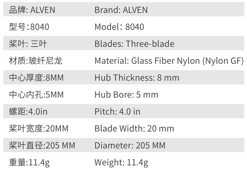 桨叶重量:11.4g